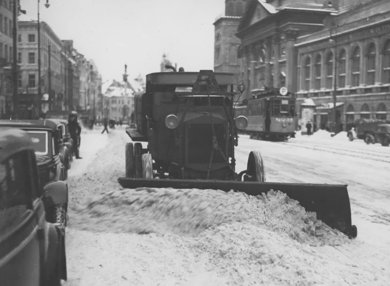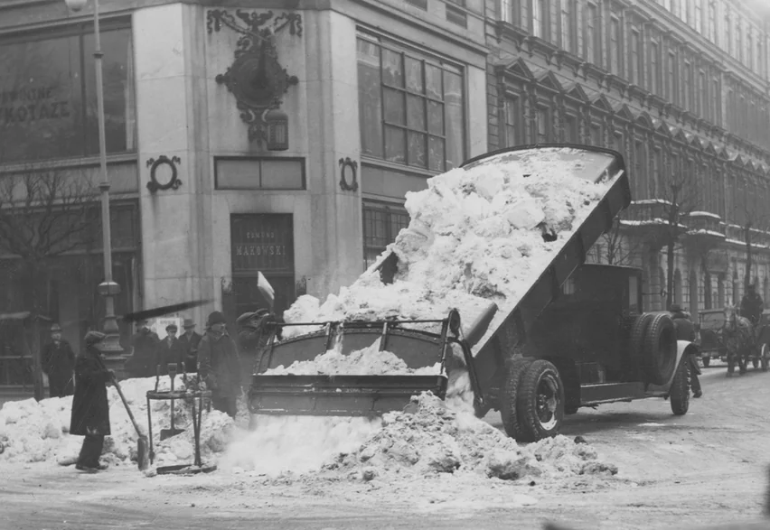 | Zimowe odśnieżanie Warszawy (Domena publiczna / Polski portal historyczny - historia.org.pl) |