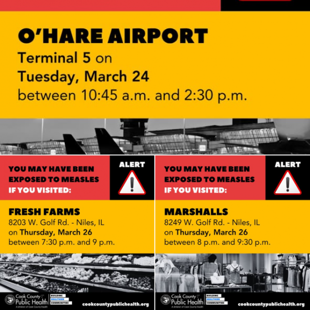 Służby zdrowia publicznego ostrzegają mieszkańców aglomeracji chicagowskiej przed możliwym narażeniem na odrę. Cook County Department of Public Health wydał komunikat dotyczący kilku miejsc, w których mogło dojść do kontaktu z osobą zakażoną tą wysoce zakaźną chorobą.