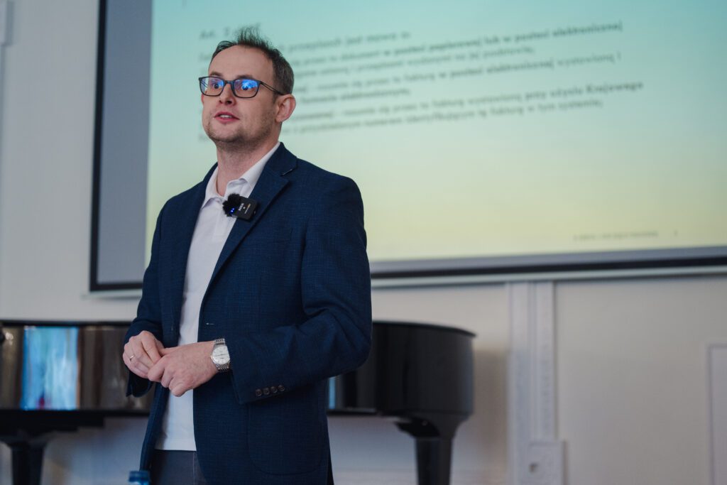 Szkolenie poprowadził Bartosz Kubista z firmy GLC, który w przystępny i praktyczny sposób przedstawił najważniejsze zagadnienia związane z funkcjonowaniem KSeF. W trakcie spotkania omówione zostały m.in. zasady działania systemu, obowiązki przedsiębiorców wynikające z przepisów podatkowych, sposoby wystawiania i odbierania faktur ustrukturyzowanych, a także kwestie związane z korektami, rozliczeniami oraz mechanizmem podzielonej płatności.