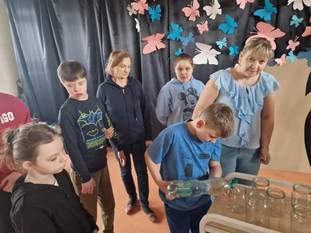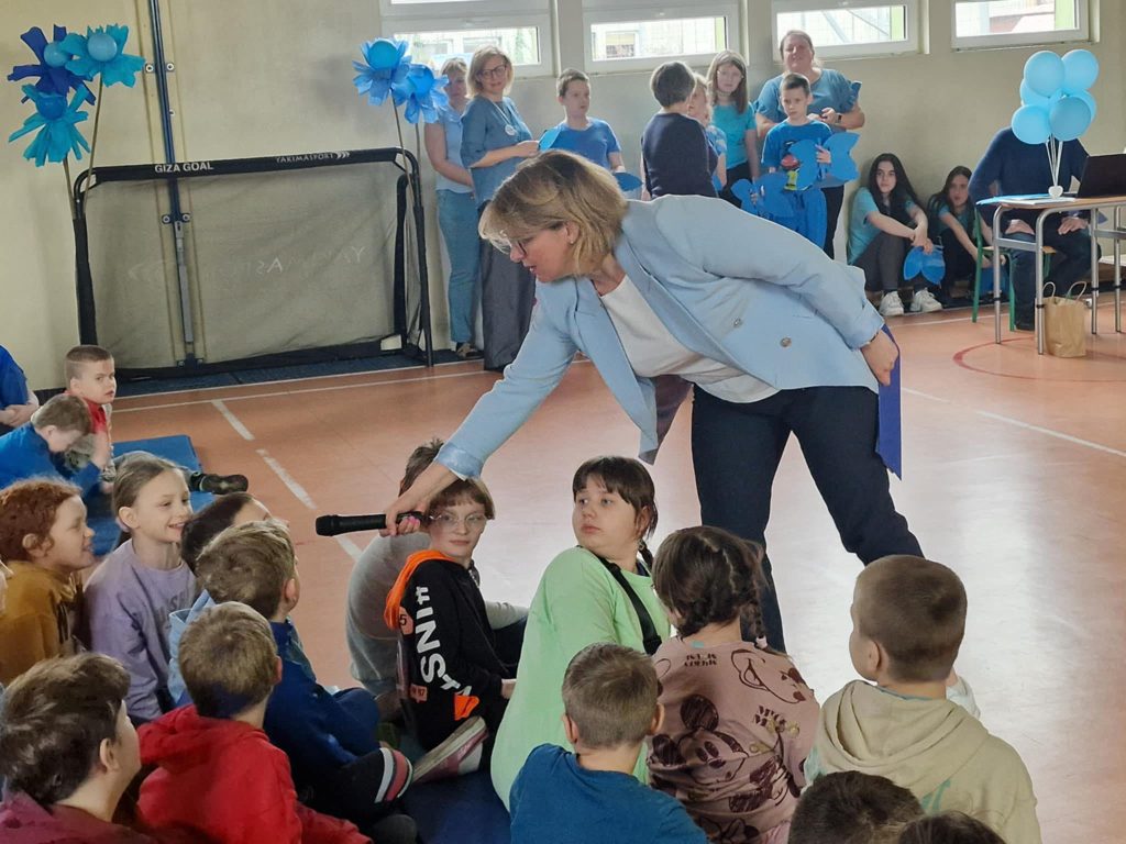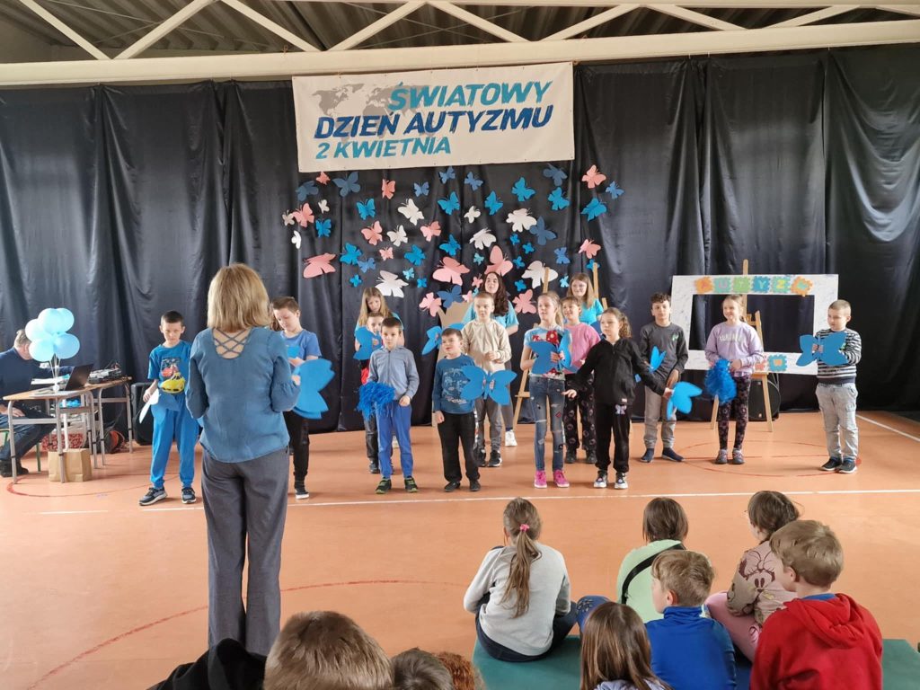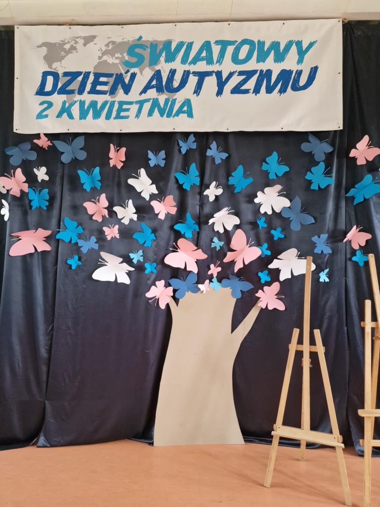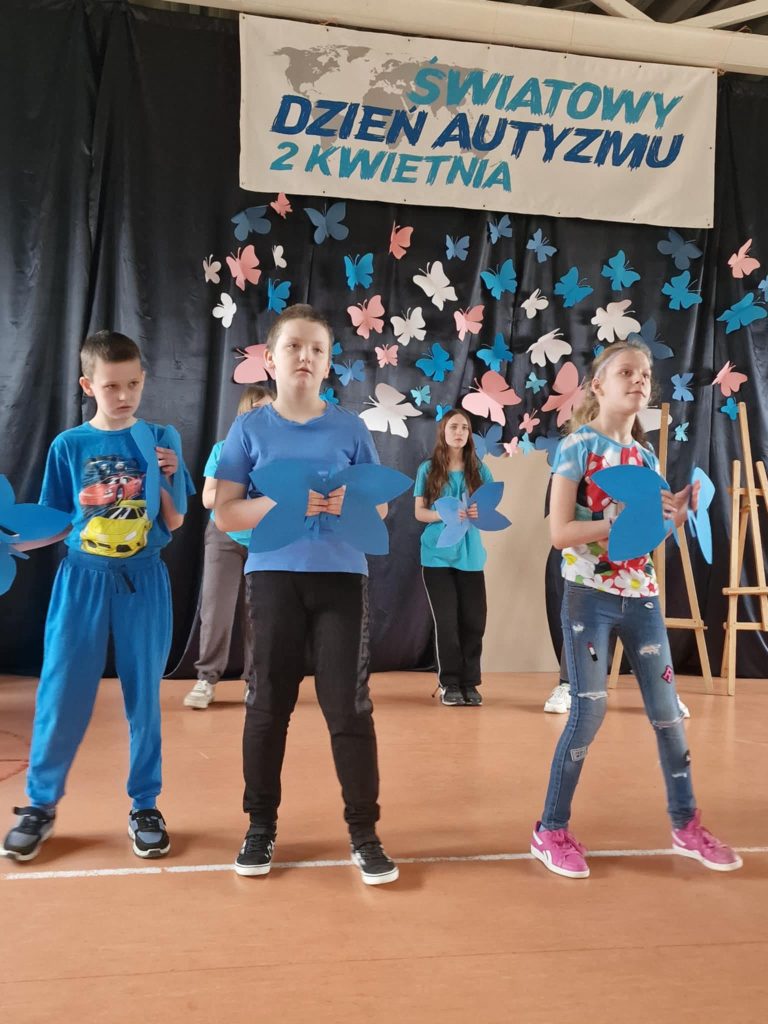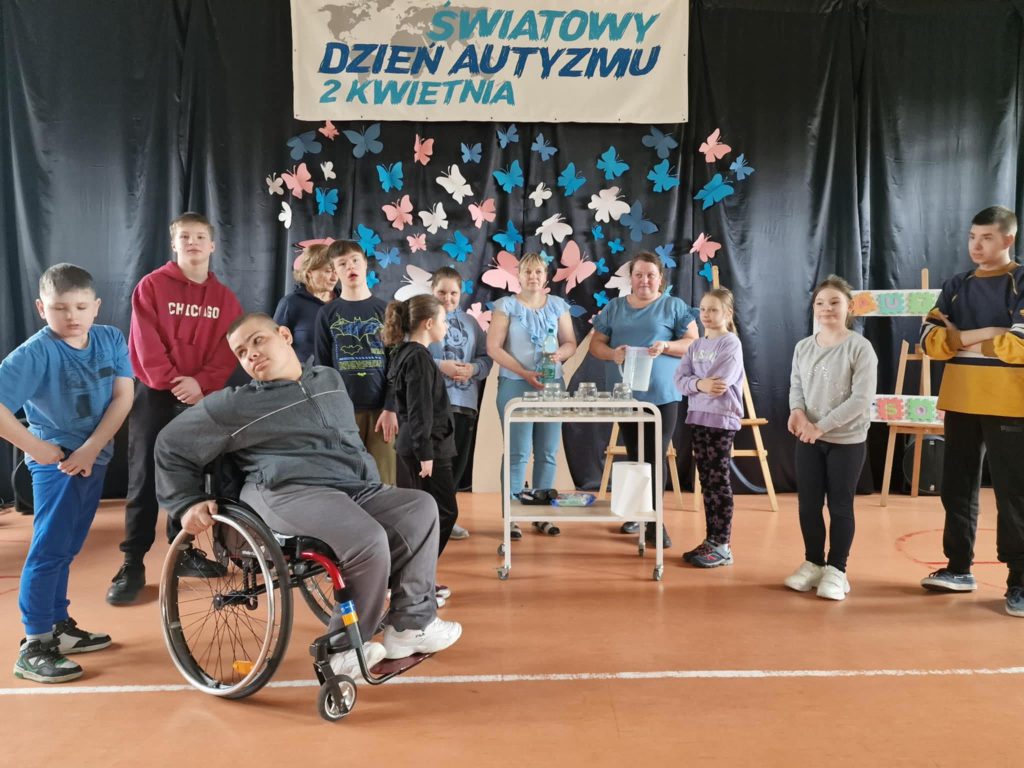 Kwiecień to światowy miesiąc wiedzy na temat autyzmu. Szczególnym dniem jest 2 kwietnia obchodzony jako Światowy Dzień Autyzmu. W naszej placówce wyjątkowo świętowaliśmy 1 kwietnia b.r. Spotkanie zaczęło się od występu tanecznego w wykonaniu naszych uczniów i uczennic. Następnie chętni mogli wykonać eksperyment naukowy ,,Niebieski Świat” i wziąć udział w różnego rodzaju aktywnościach plastycznych. Na zakończenie wszyscy uczestnicy zrobili pamiątkowe zdjęcie. Dziękujemy uczniom z klasy III C ze Szkoły Podstawowej nr 4 w Sieradzu za przybycie i wspólną zabawę. W geście solidarności z osobami z zaburzeniami ze spektrum autyzmu wszyscy byliśmy ubrani na niebiesko.