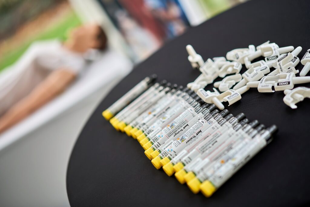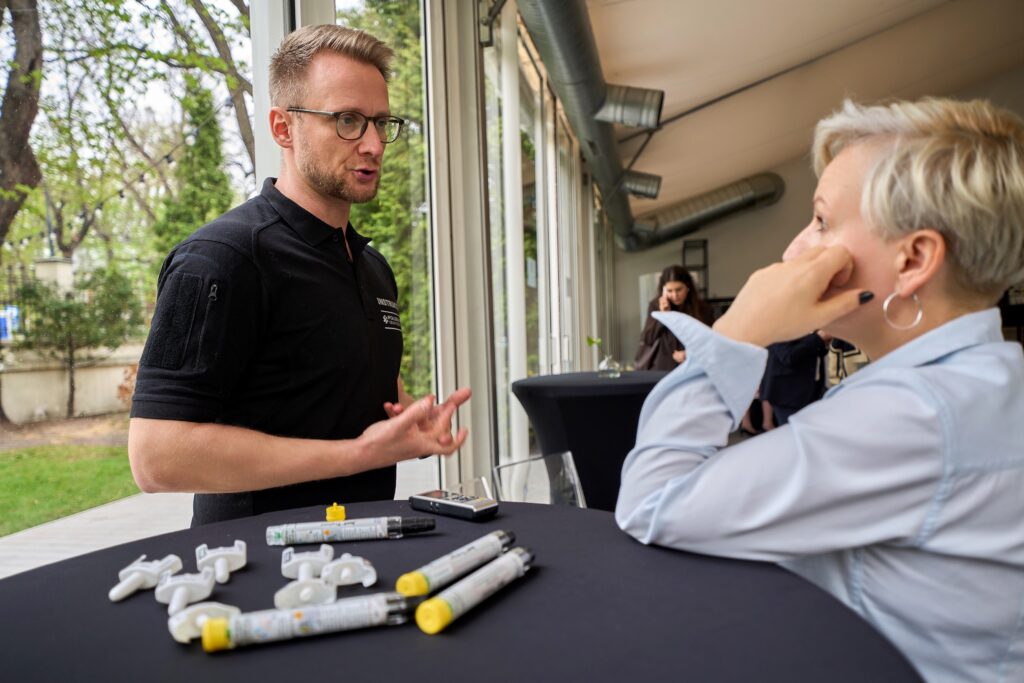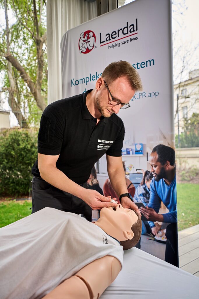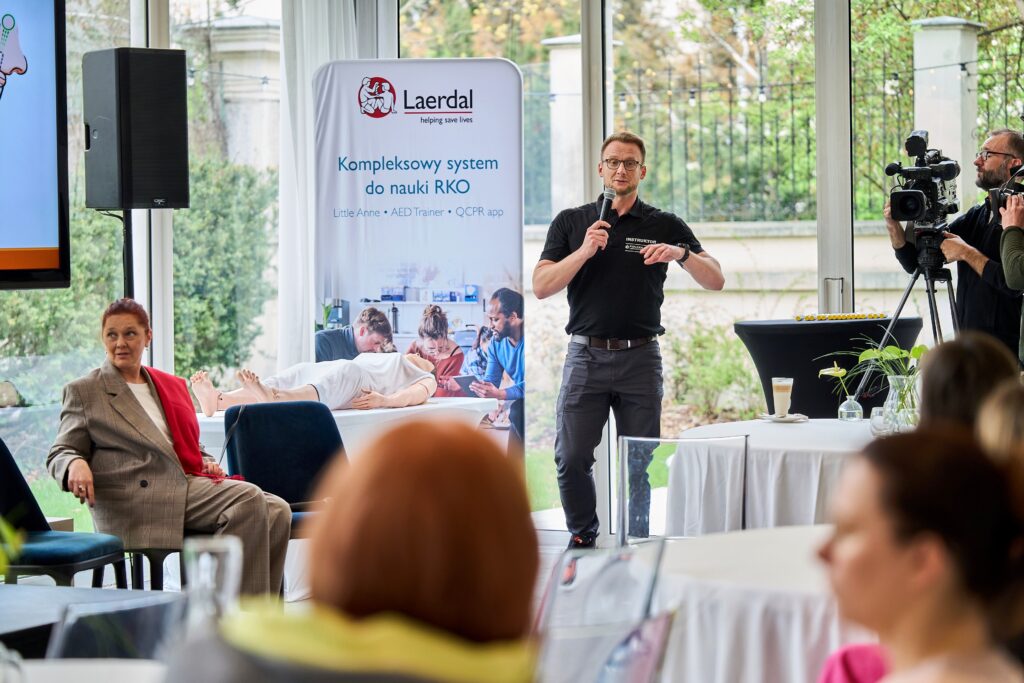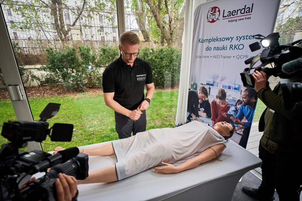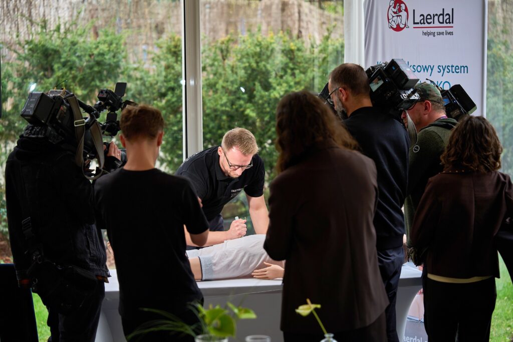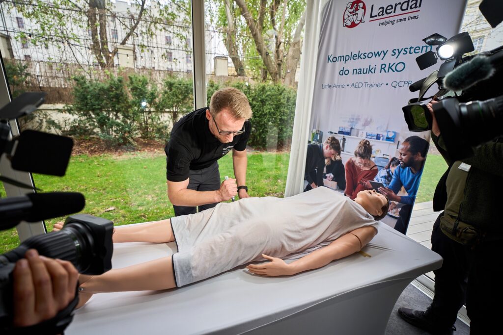 W czasie konferencji dziennikarze i zaproszeni goście odbyli trening podawania adrenaliny na specjalnym fantomie.