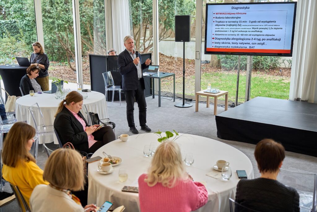 Z kolei prof. dr hab. n. med. Radosław Gawlik, kierownik Katedry i Kliniki Chorób Wewnętrznych, Alergologii i Immunologii Klinicznej Śląskiego Uniwersytetu Medycznego, omówił znaczenie diagnostyki po przebytym epizodzie anafilaksji. Wskazał, iż u dzieci najczęstszymi przyczynami są pokarmy, użądlenia owadów i leki, natomiast u dorosłych dominują reakcje polekowe. Zwrócił również uwagę na zjawisko anafilaksji idiopatycznej oraz możliwy związek z mastocytozą, która może maskować objawy choroby. Mastocytoza to rzadka grupa nowotworów układu krwiotwórczego charakteryzująca się nadmiernym gromadzeniem komórek tucznych (mastocytów) w skórze lub narządach wewnętrznych.