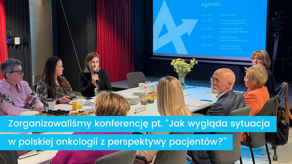 W związku z publikacją raportu zorganizowaliśmy konferencję prasową pt. „Jak wygląda sytuacja w polskiej onkologii z perspektywy pacjentów?”. Podczas spotkania zwróciliśmy uwagę opinii publicznej oraz decydentów na realne, systemowe trudności, z jakimi mierzą się osoby chore na nowotwory. W dyskusji udział wzięli m.in. wiceminister zdrowia prof. Tomasz Maciejewski, przewodnicząca Krajowej Rady Onkologicznej Dr hab. n. med. Beata Jagielska, zastępca dyrektora Departamentu Współpracy Biura Rzecznik Praw Pacjenta Marzanna Bieńkowska oraz przedstawiciele organizacji pacjenckich. Ważnym głosem spotkania były także doświadczenia pacjentów oraz wystąpienie Barbary Kurdej-Szatan, ambasadorki Onkofundacji Alivia.