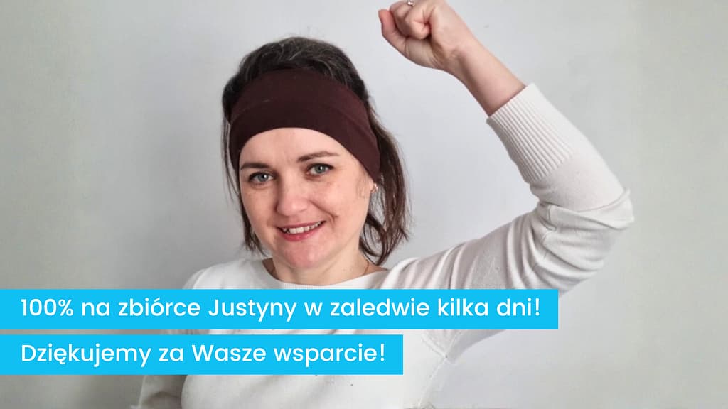 Na początku lutego Justyna rozpoczęła zbiórkę na dalsze leczenie guza mózgu – gwiaździaka II stopnia. Zaledwie po kilku dniach jej zbiórka osiągnęła 100%. To pokazuje, jak wielką moc ma wspólne działanie. Dzięki temu Justyna może kontynuować leczenie i skupić się na tym, co najważniejsze – powrocie do zdrowia.