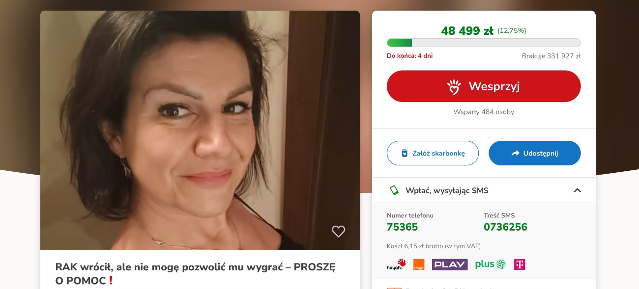 W ramach zbiórki na Pani leczenie przez rok wpłacono prawie 50 tys. zł.