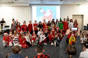 Po części oficjalnej scenę przejął Teatr Palnik działający przy Środowiskowym Ognisku Wychowawczym TPD i zaprezentował świąteczne scenki związane z Mikołajem i oczekiwaniem na prezenty, a występ zakończył wspólnym śpiewaniem kolęd. Teatr prowadzi swoją działalność w ramach zajęć PEPCO „ Rozwijanie zainteresowań i pasji „. Kolejnym punktem programu była prezentacja muzyczna przygotowana przez Fundację Hamak, która prowadzi w ognisku zajęcia . Dzieci wraz z instruktorami zaśpiewały kolędy, tworząc ciepłą, świąteczną atmosferę.