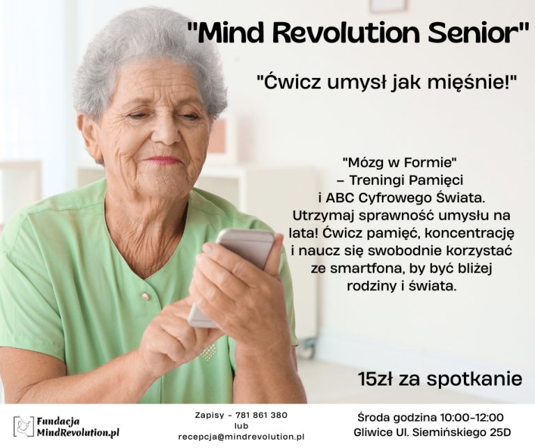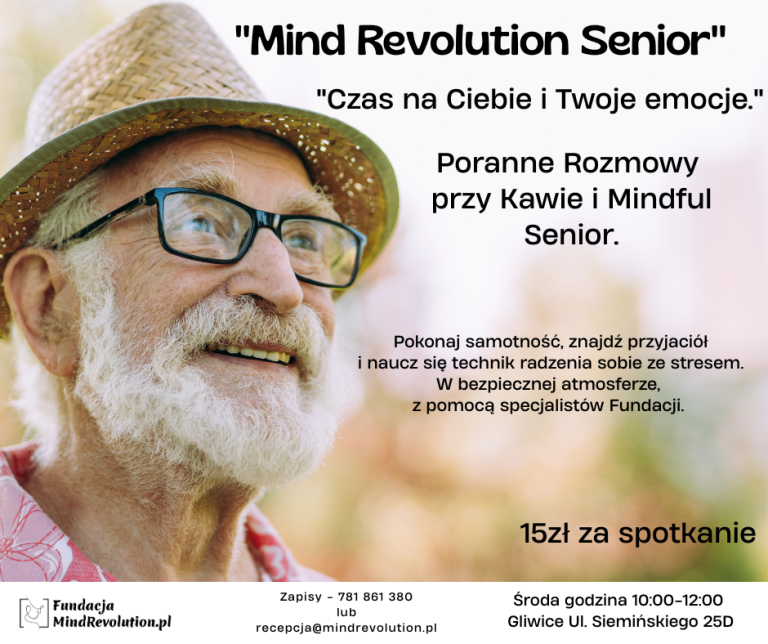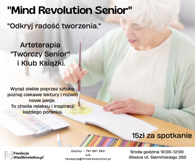Nowa inicjatywa Fundacji Mind Revolution, skierowana jest do osób starszych, które chcą zadbać o sprawność umysłu, dobrostan psychiczny oraz aktywne relacje społeczne. Program został zaprojektowany jako kompleksowa forma wsparcia, łącząca elementy profilaktyki zdrowia psychicznego, treningu poznawczego oraz twórczej aktywizacji.
