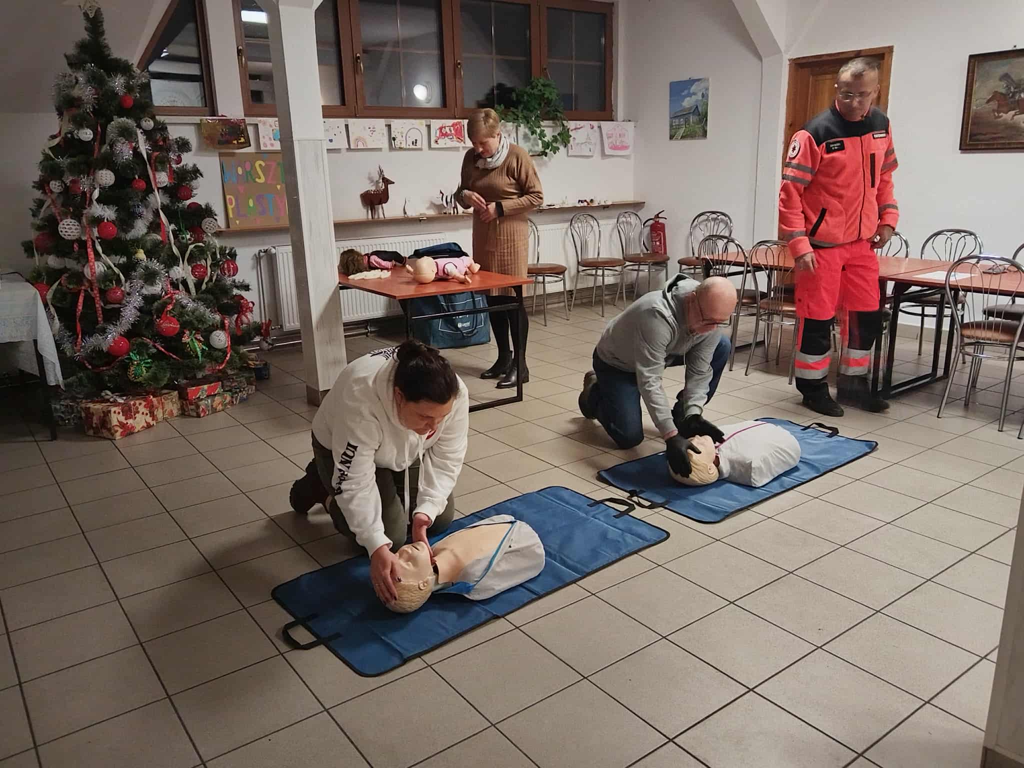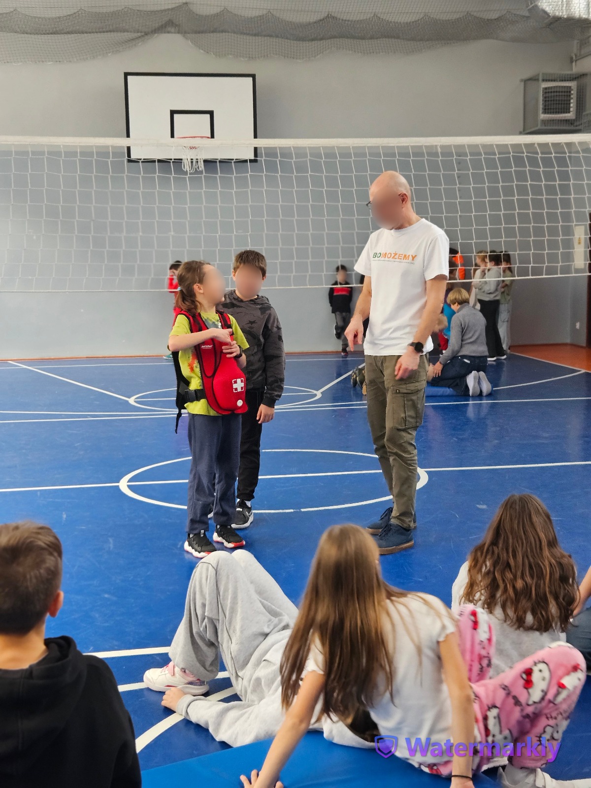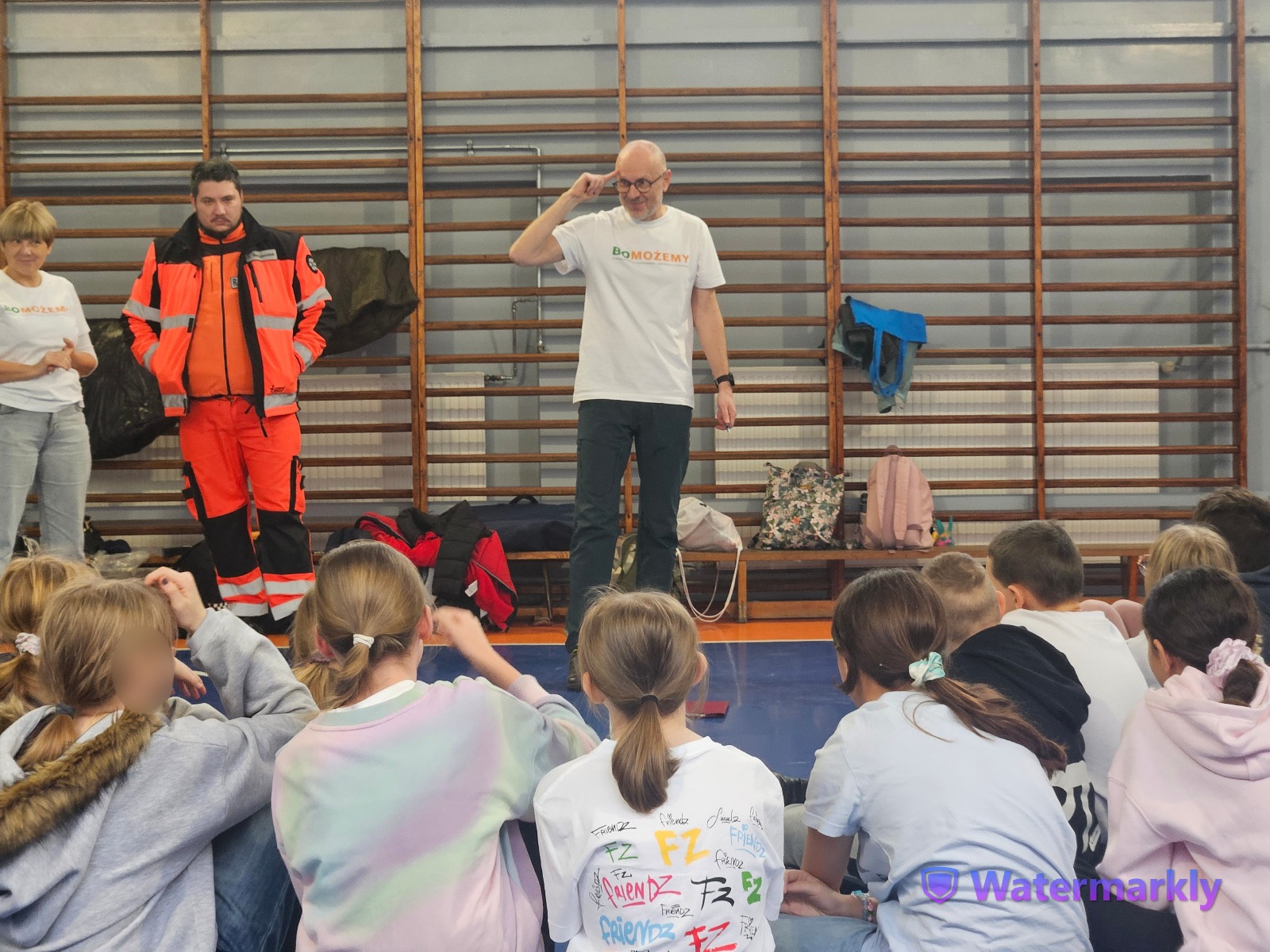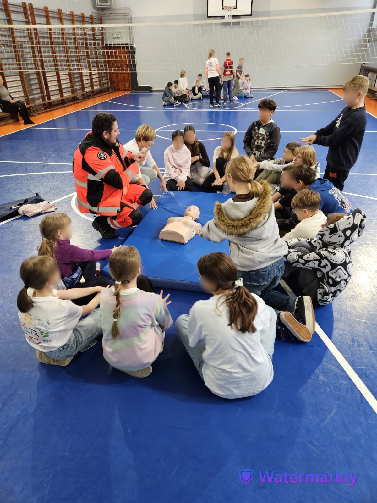 Warsztaty dla 96 uczniów w wieku 10–12 lat, uczące reagowania w nagłych wypadkach, pożarach i zadławieniach.