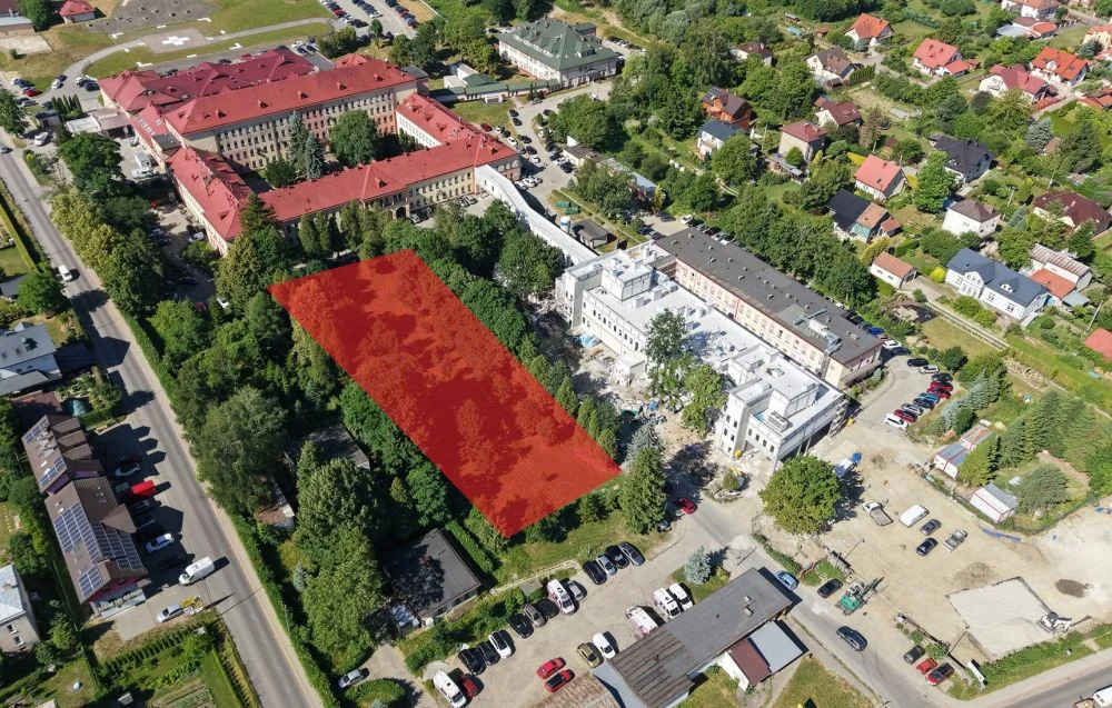 Zaznaczony na czerwono obszar to teren planowanej budowy Centrum Ochrony Zdrowia Psychicznego SPZOZ w Sanoku. fot. Powiat Sanocki[/caption]