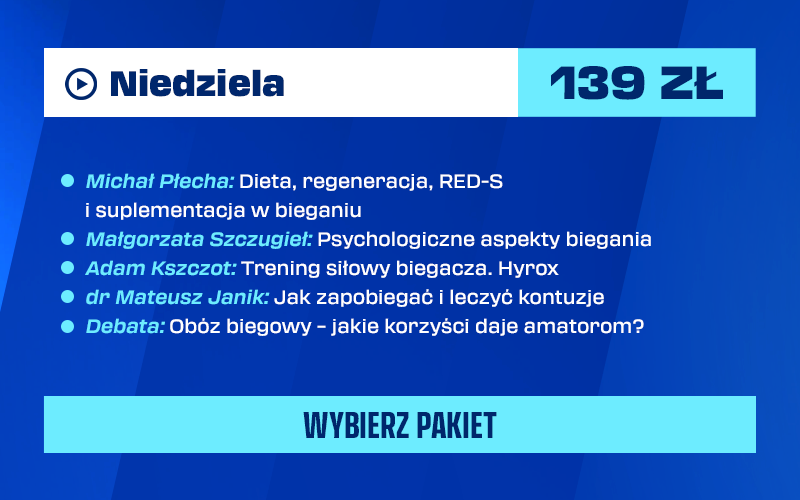 - Prowadzący: Michał Płecha – Co jeść, żeby biegać szybciej i bez kontuzji, od treningu jelita po zespół RED-S u biegaczy