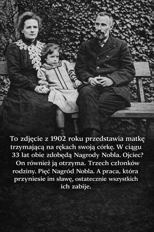 W internecie (mi się wyświetliło na Facebooku, choć niczego takiego nie zamawiałem, ale tę kwestię omawiałem już wcześniej) krąży poruszający wpis o zdjęciu z 1902 roku. Widzimy na nim matkę i córkę z siedzącym obok nich mężczyzną. Tekst głosi: „Trzech członków rodziny. Pięć Nagród Nobla. A praca, która przyniesie im sławę, ostatecznie wszystkich ich zabije”. Brzmi jak gotowy scenariusz filmowy, prawda? Cały post to wzruszająca historia, typowy wyciskacz łez dla bardziej wrażliwych. Cóż, emocje. Emocje to waluta w social mediach. Emocje a nie prawda.